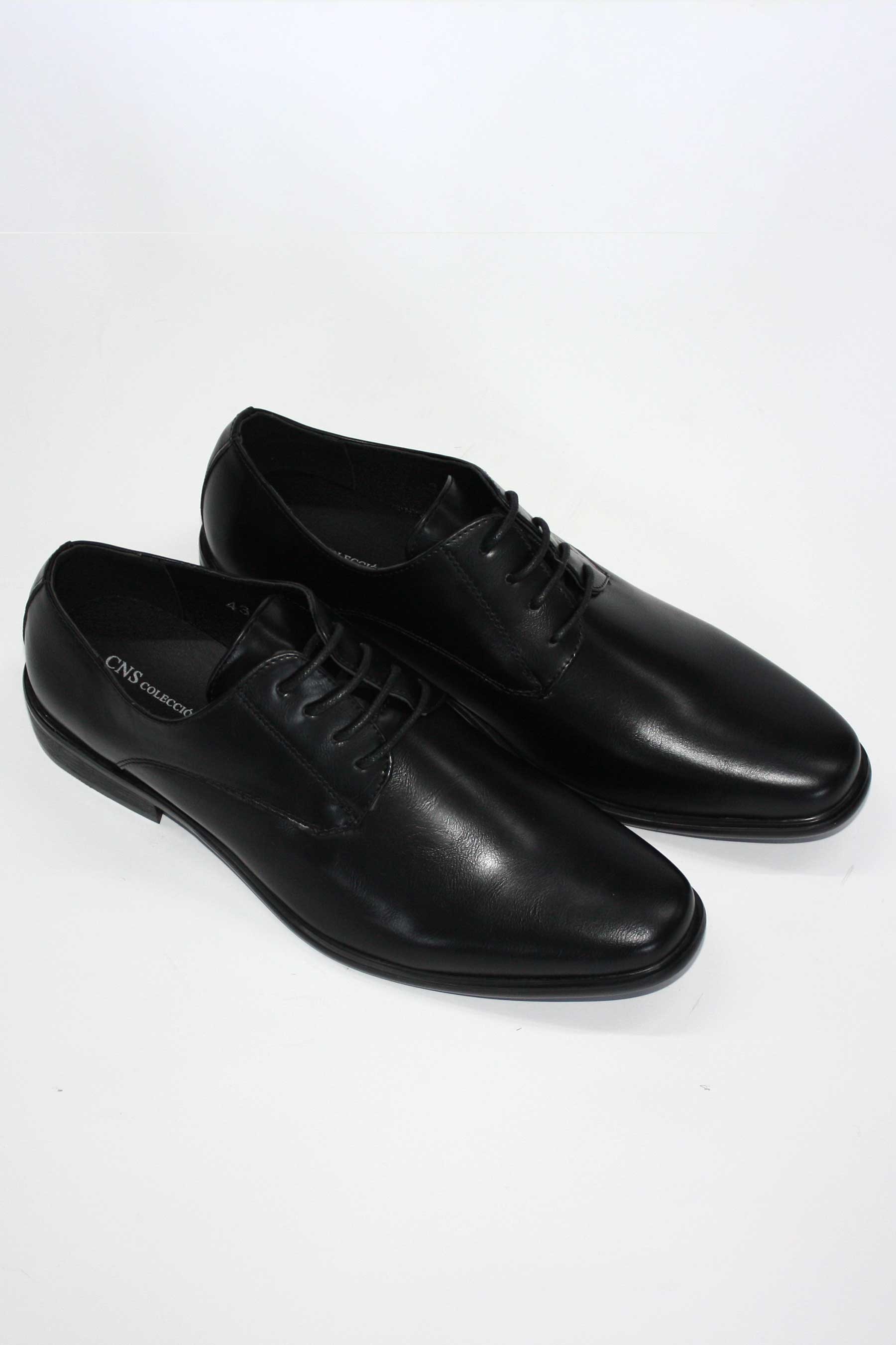 Zapato de vestir tipo blucher liso y cordonera con cuatro pasados.