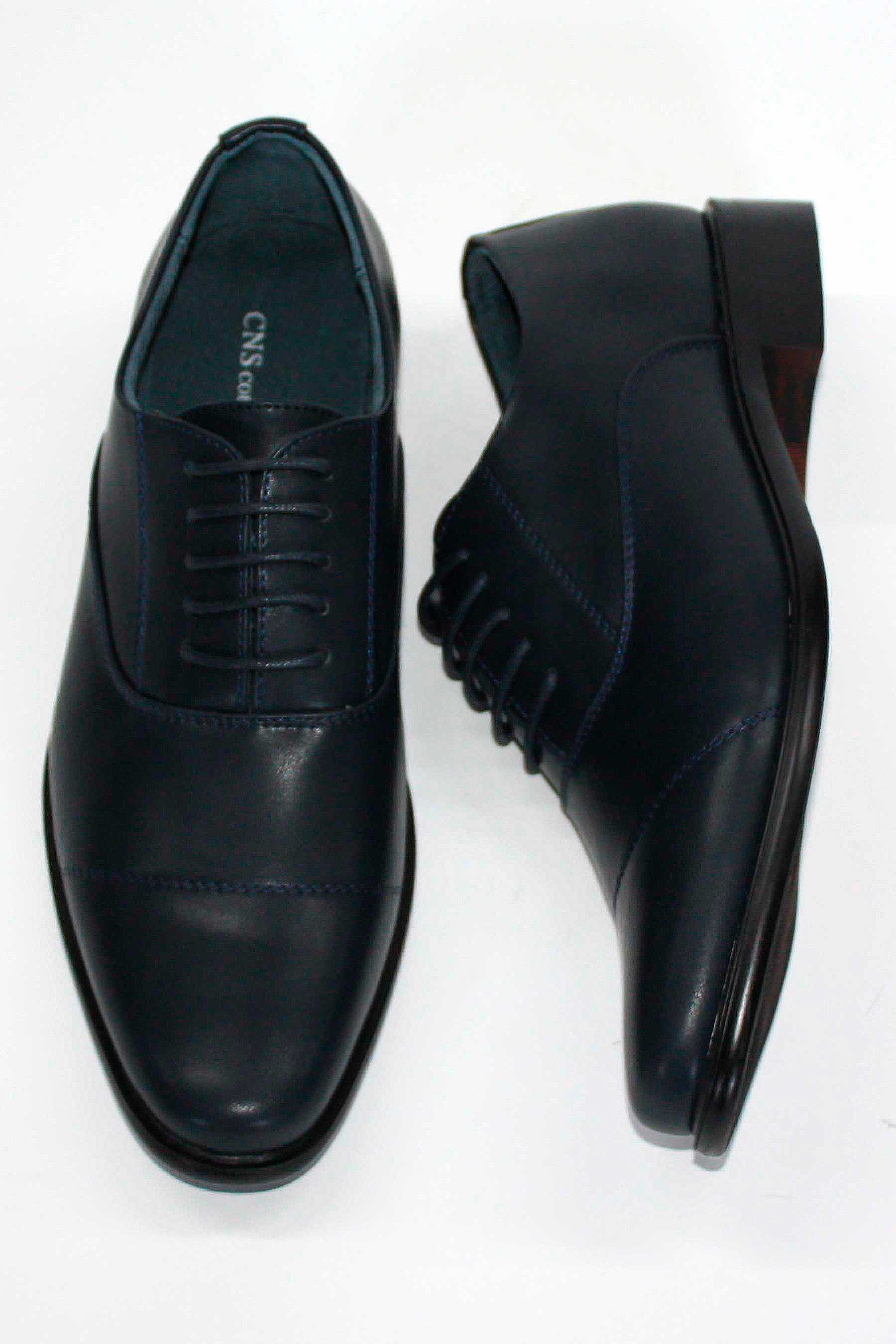 Zapato de vestir tipo blucher con costura en puntera y cordonera con cinco pasados.