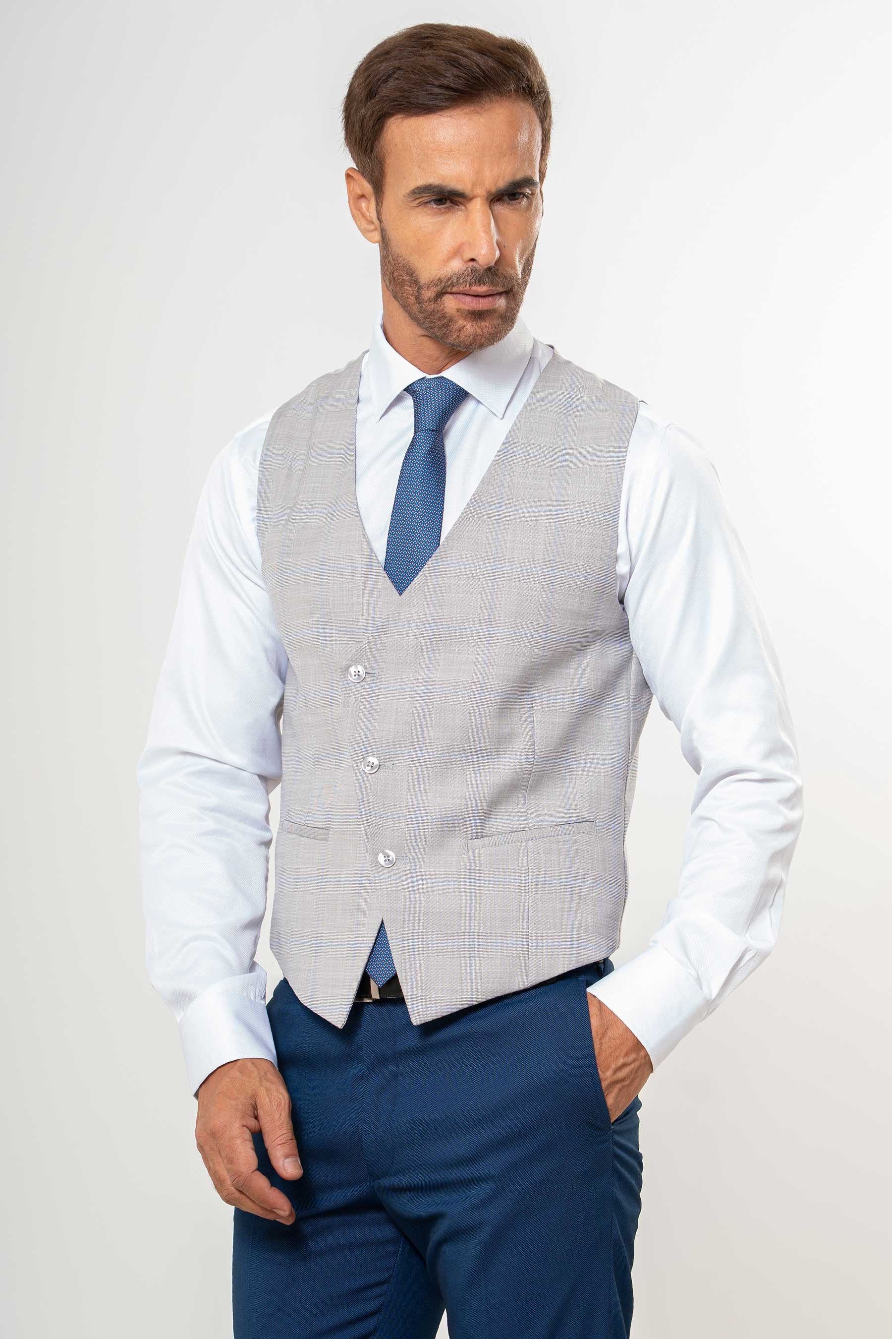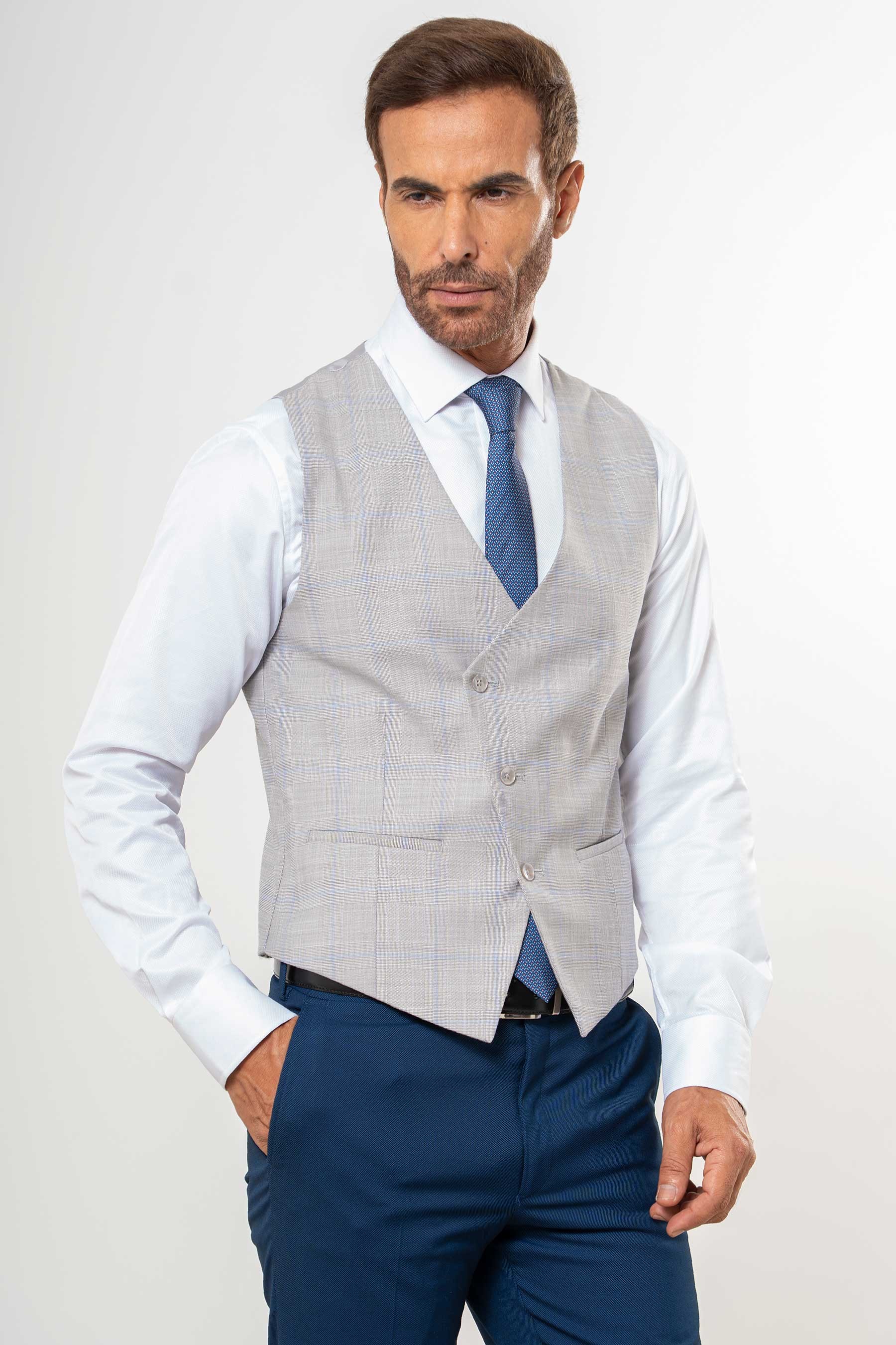 Chaleco cruzado cuadro discreto gris