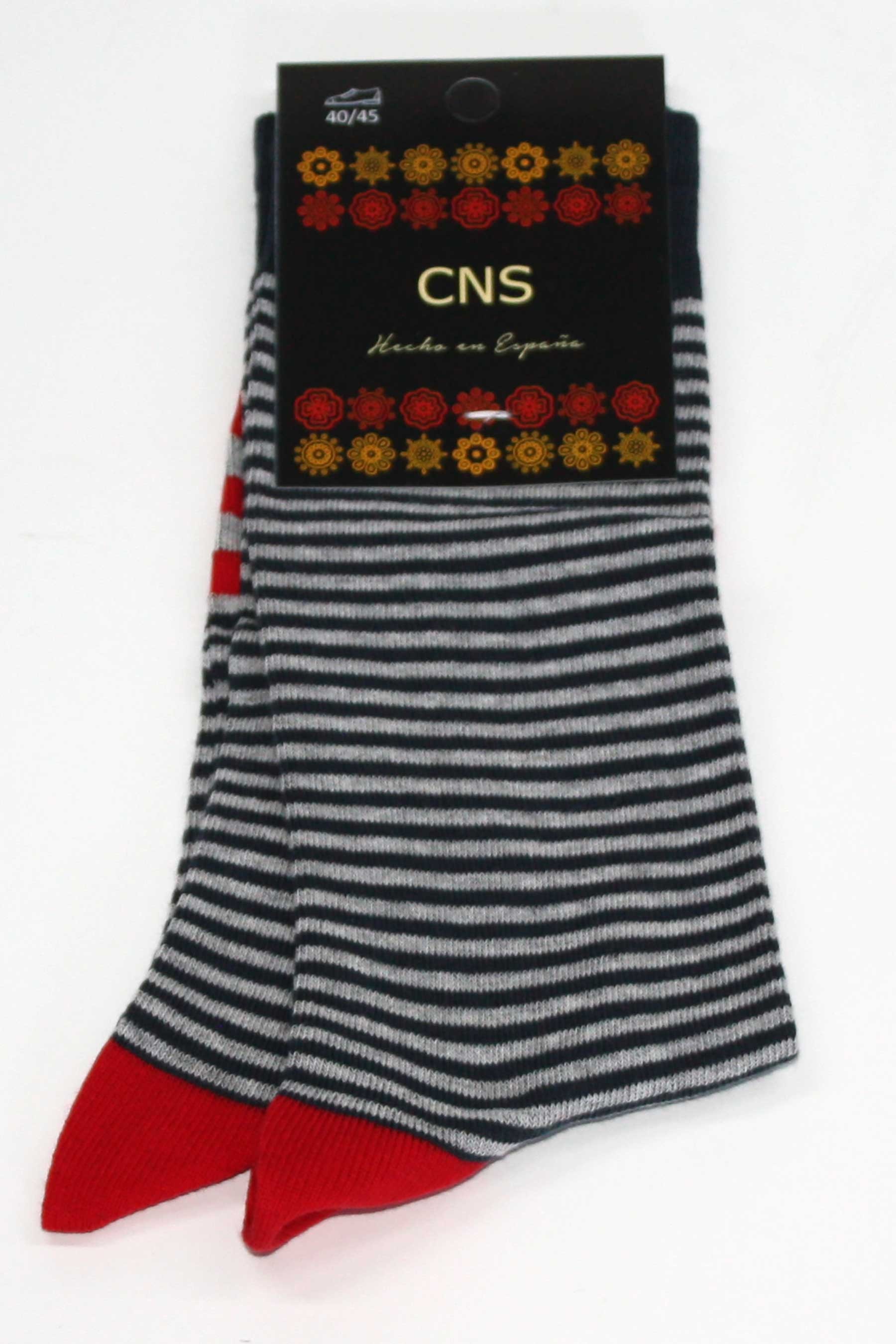 Calcetín de fantasía rayas y puntera combinada.
