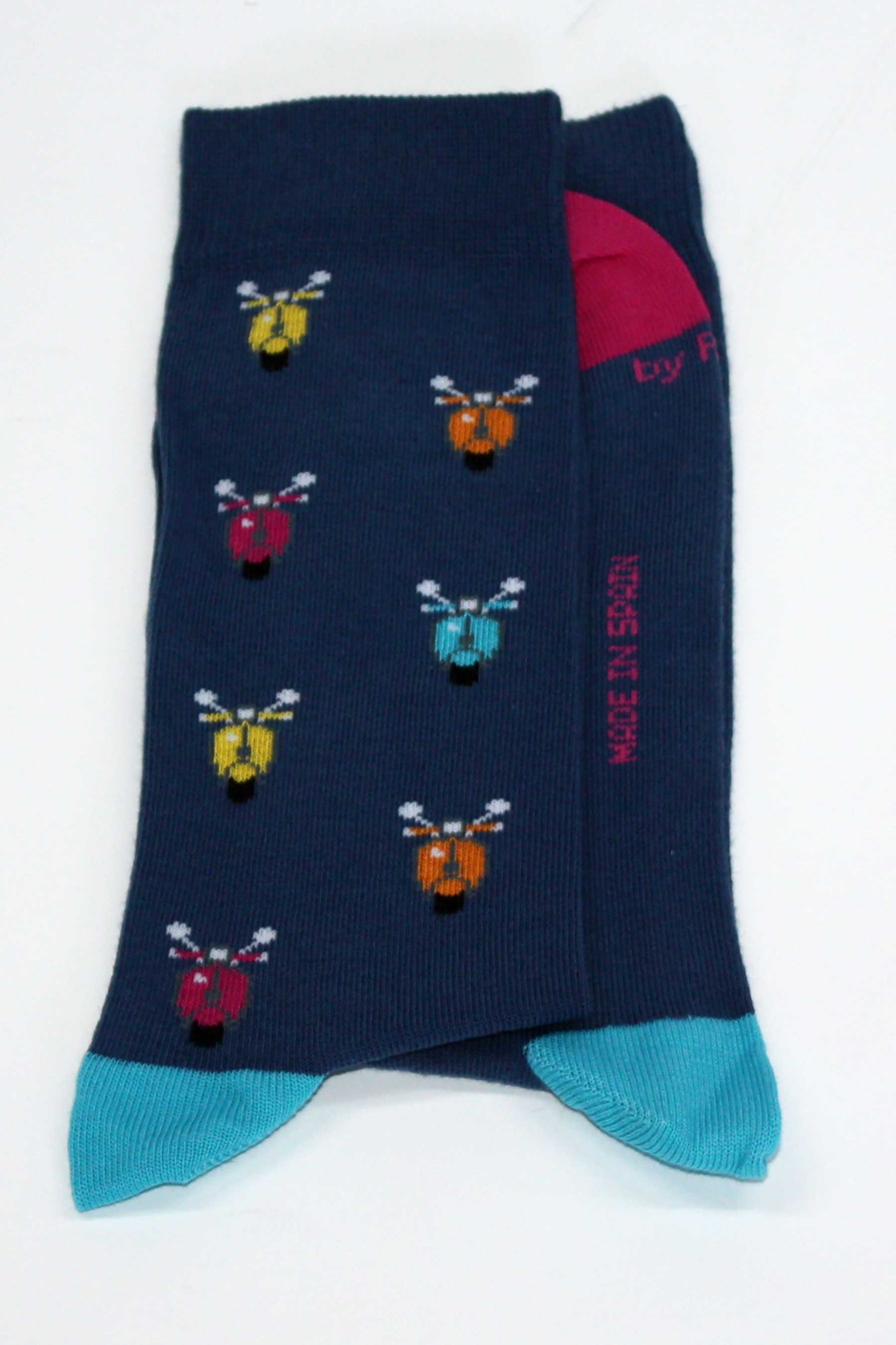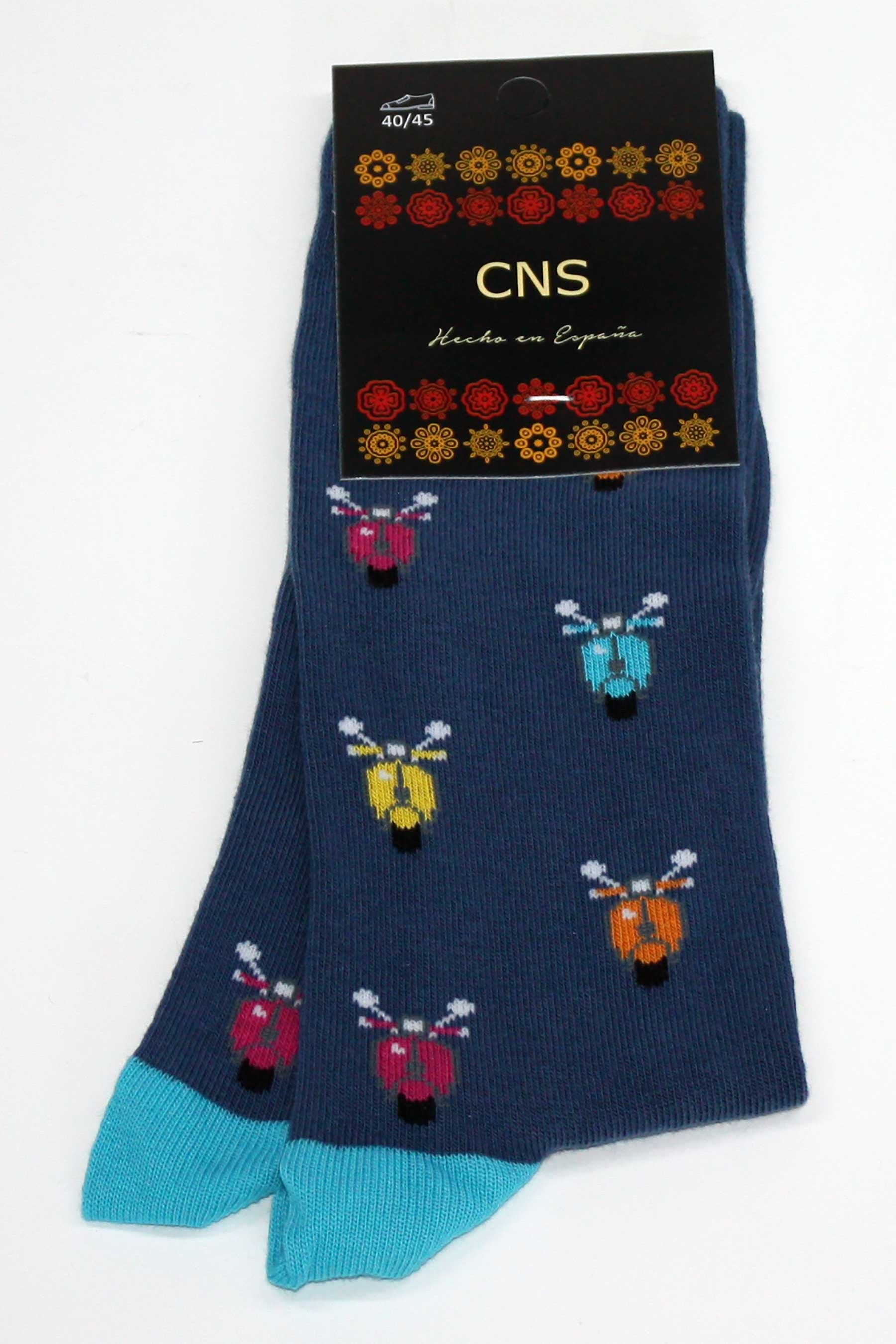 Calcetín de fantasía motocicletas y puntera combinada.