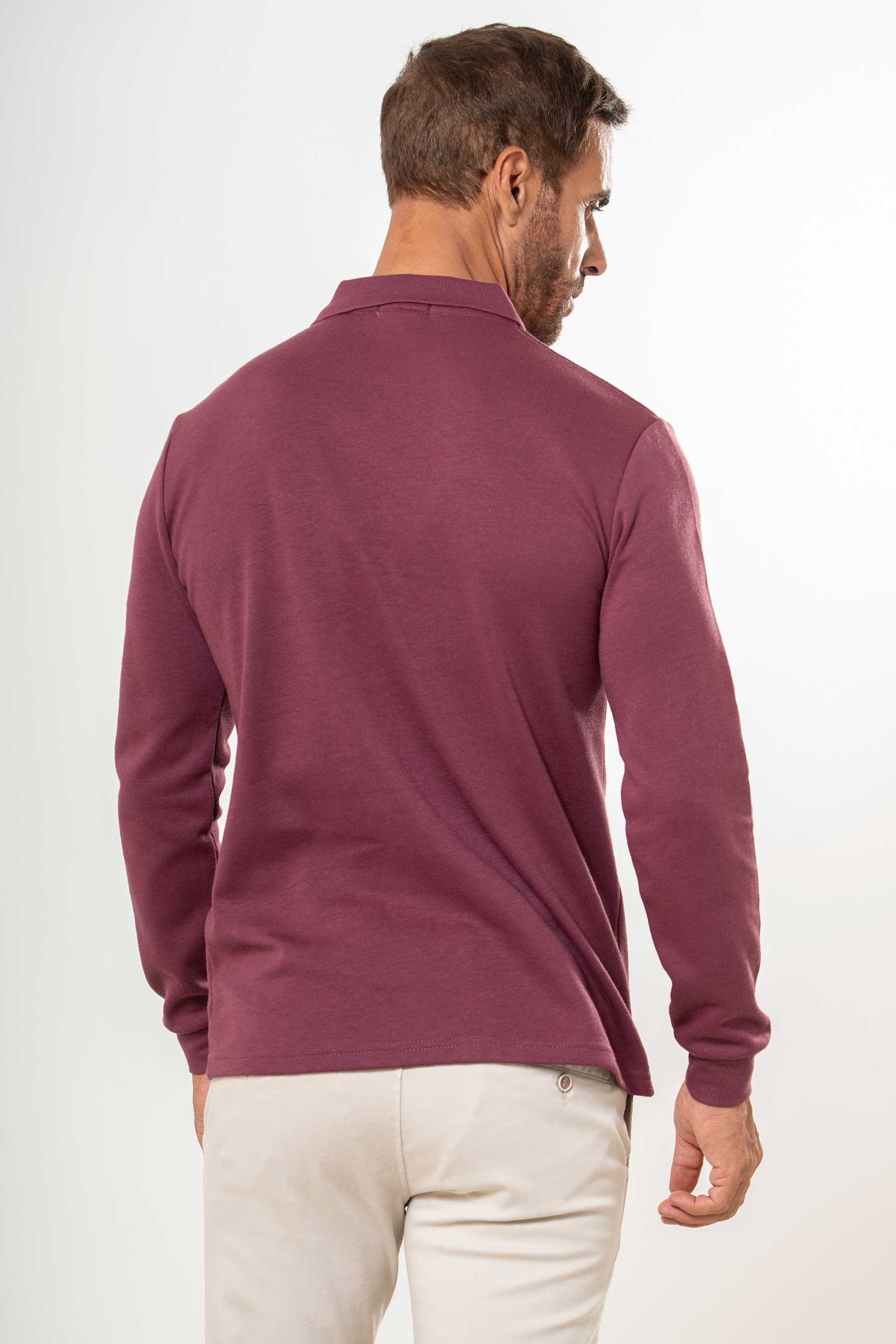 Polo liso de manga larga con bolsillo y tapeta de tres botones al tono. Disponible en varias tonalidades.