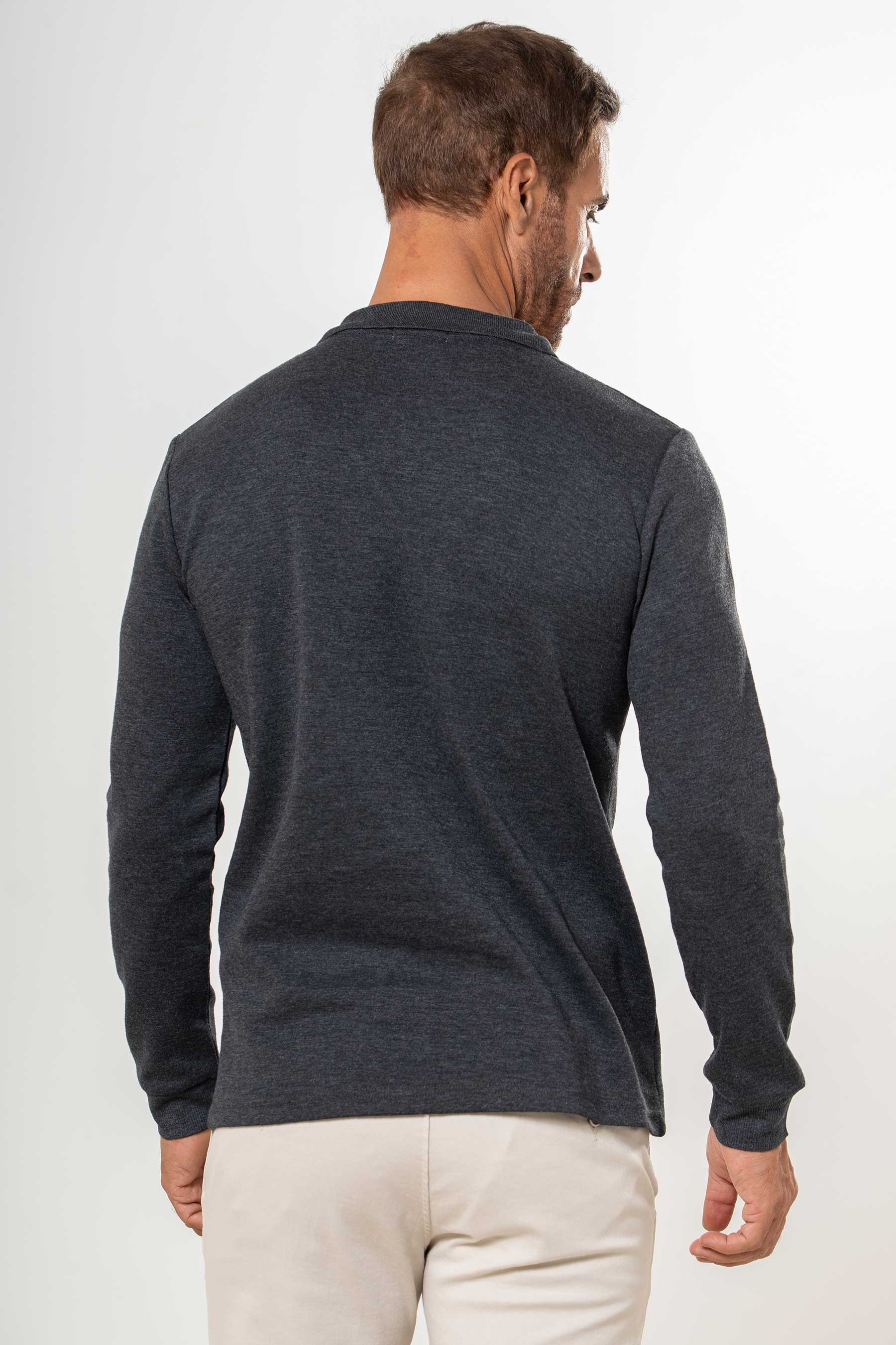 Polo liso de manga larga con bolsillo y tapeta de tres botones al tono. Disponible en varias tonalidades.