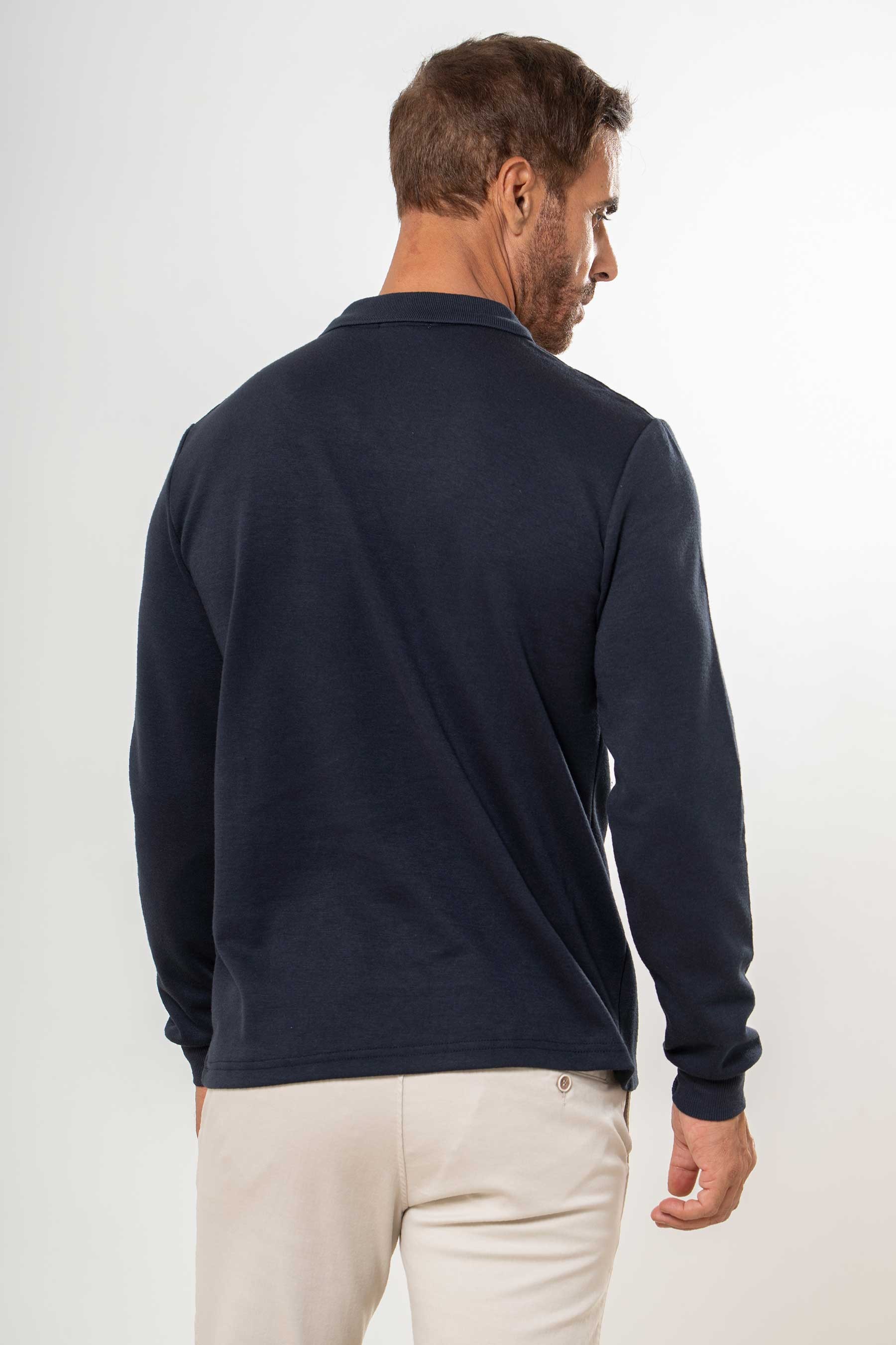 Polo liso de manga larga con bolsillo y tapeta de tres botones al tono. Disponible en varias tonalidades.