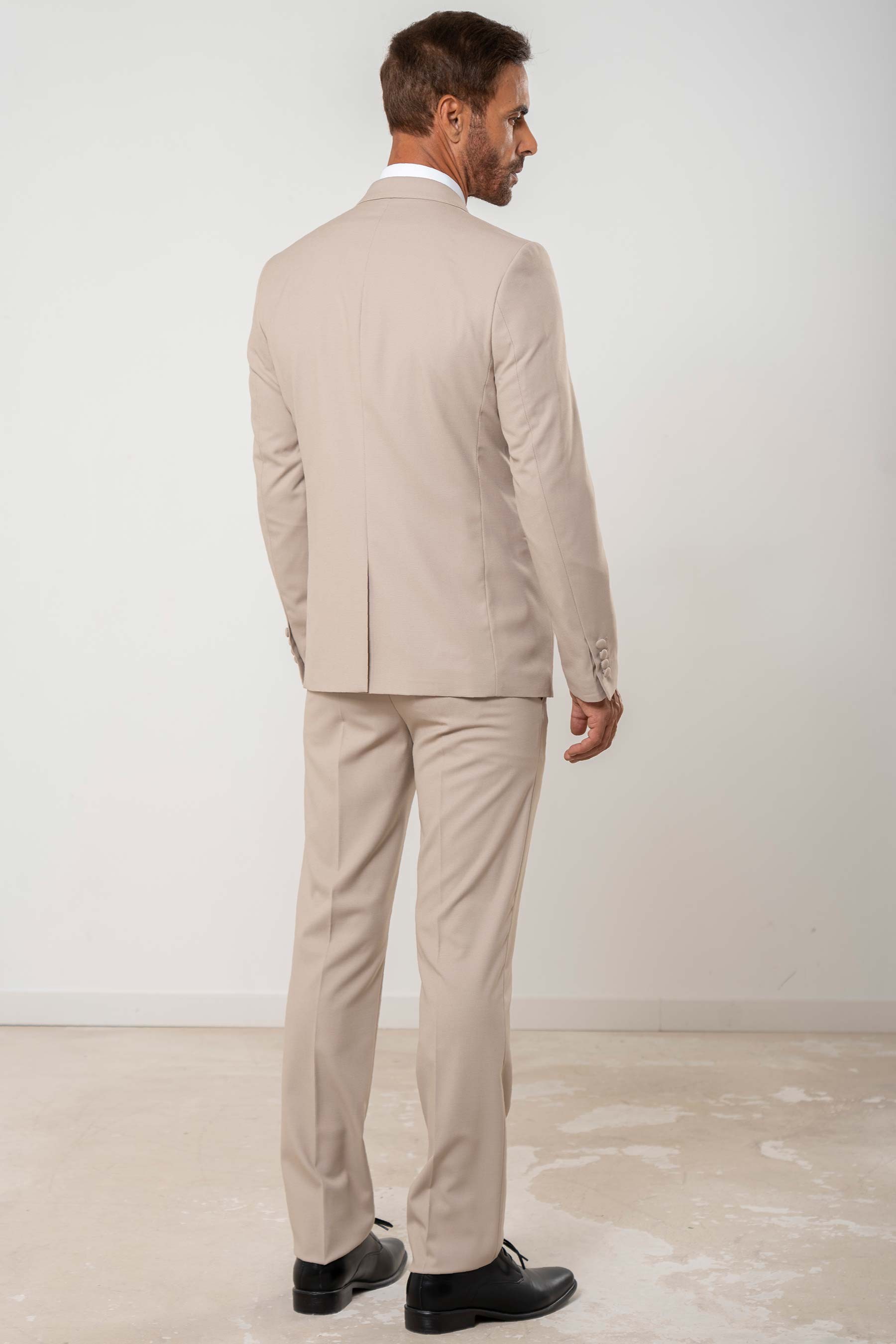 Traje elástico de ceremonia estructura minipuntillé, patrón Slim Fit. Americana tipo chaqué corto, cierre con un botón y una abertura trasera. Botones de chaqueta forrados en tejido principal.